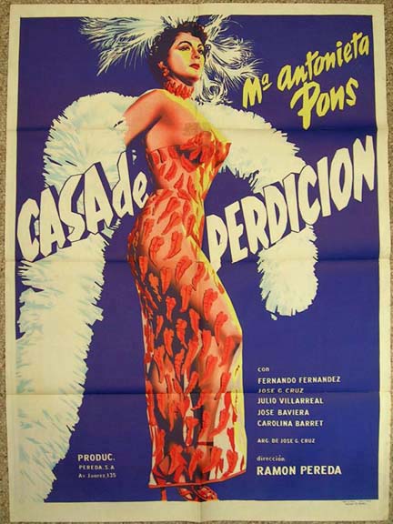 Vibrant Mexican screen style film poster with artwork that was quite unusual for it's time. The onesheet features colorful image of Pons in a bikini, plus pictures other cast members... This movie starred Maria Antonieta Pons, Joaquin Cordero, Domingo Soler, Lola Beltran and Raul Meraz. $40 |