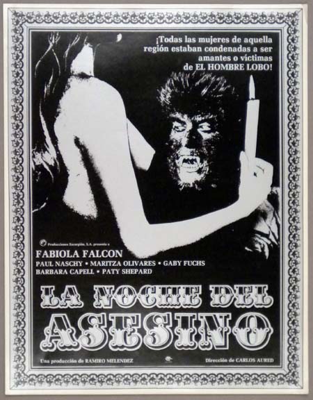 Striking Mexican horror film window card poster (13x16.75") features a stylish image of a werewolf staring at a naked woman. The card is crisp and clean... This movie starred Paul Naschy, Fabiola Falcon, Vidal Molina and Maritza Olivares. $20 |