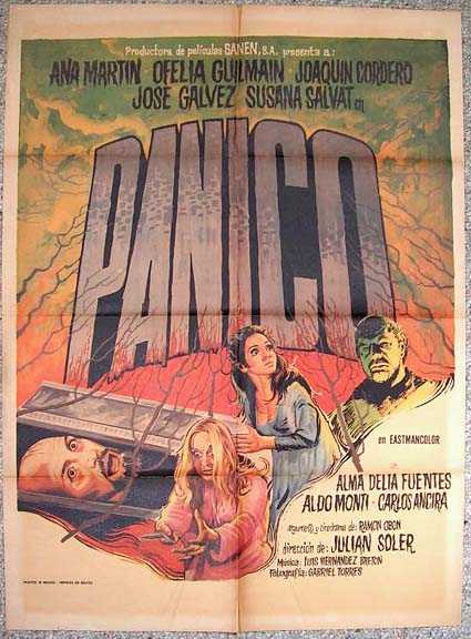 Eye-catching horror film poster features graphics that are both stylish and gruesome. The film was a three-part anthology contains elements of both Edgar Allan Poe and Dr. Caligari. The paper has browned a bit and there are average signs of use, but no major flaws... This movie starred Ana Martin, Ofelia Guilmain, Joaquin Cordero, Jose Galvez, Susana Salvat and Aldo Monti. $20 |