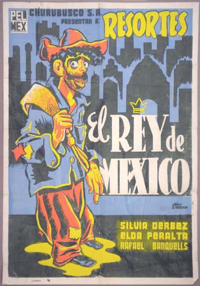 Unusual Mexican comedy film poster features a nice caricature of a downtrodden Resortes. Produced with a simple, silk-screen process, the poster has an interesting look, with lots of primary-colors!... This movie starred Adalberto 'Resortes' Martinez, Silvia Derbez, Elda Peralta and Jose Galvez. $20 |