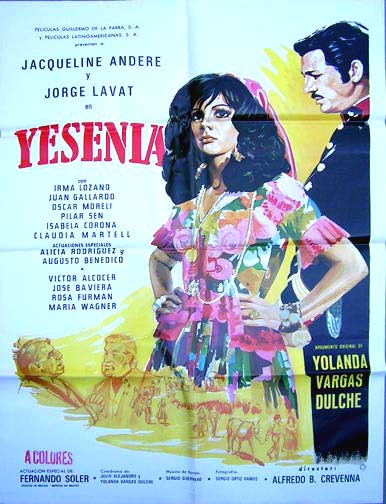 Colorful romance film poster features a great image of the sexy Ms. Andere wearing an outfit from the period... This movie starred Jacqueline Andere, Jorge Lavat, Irma Lozano and Juan Gallardo. $10 |