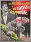 Colorful Mexican horror / sci-fi movie poster with lurid color and a nice portrait of the hideous monster. This was the first half of the two-film horror series, which concluded with, Huella Macabra. There is some edge wear, plus an area of discoloration caused by a piece of tape on the back, but these flaws are not too distracting. The poster will still display quite well... The film starred Eric del Castillo, Jaime Fernandez, Elsa Cardenas, Carman Molina and Ramon Bugarini. $30 |