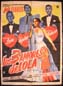 Wonderful comedy film poster has great images of the four main stars. Beautiful Lola Flores tries to choose between her three suitors -- each of whom is holding a heart. This onesheet appears to have gotten damp at some point, leaving some mild waviness and light water marks on the yellow background area near the top. However, these flaws are not very distracting, and otherwise, the poster looks great... This movie starred Lola Flores, Agustin Lara, Luis Aguilar, Abel Salazar, Nono Arsu and Luis Musset. $30 |