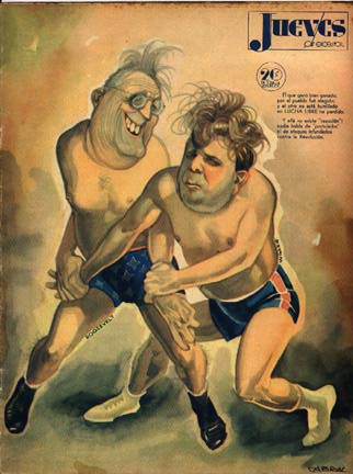 Cabral cover: "FDR & Wilkie Wrestling"