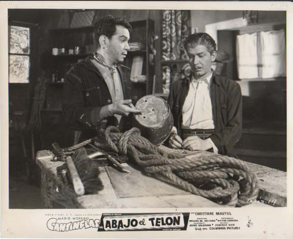 Original B&W still from a 1954 Mexican comedy film. The photo has a few pinholes at the corners, but otherwise, it is clean and bright... This movie starred German 'Tin Tan' Valdes, Yolanda Varela, Oscar Pulido, Wolf Ruvinskis, Liliana Duran and Marcelo Chavez. $15 |