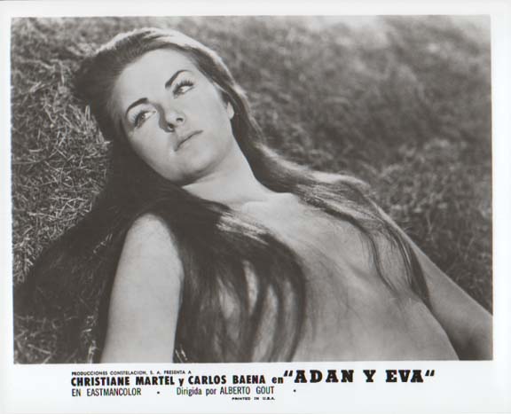 Original B&W still from a 1956 Mexican film shows ex-Miss Universe Martel wearing nothing. It's not surprising that Ms. Martel's husband tried to have all prints of this film destroyed... This movie starred Christiane Martel and Carlos Baena. $20 |