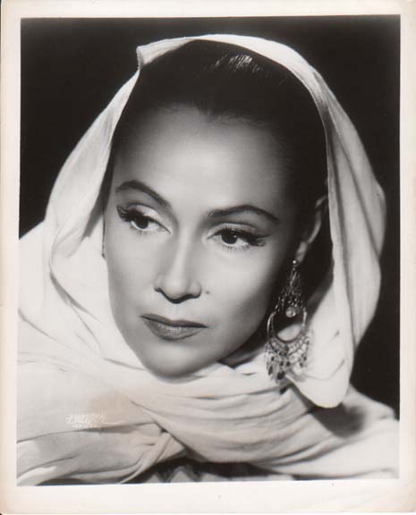Original studio portrait of Dolores del Rio was probably taken in the early 1940s. This photo was apparently used to illustrate the book, MORE FABULOUS FACES -- and a Doubleday & Co. snipe is on the back. $25 |