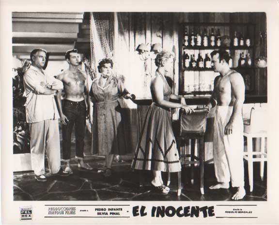 Original B&W still from a 1955 Mexican comedy film. Great image of a shirtless Pedro Infante... This movie starred Pedro Infante, Silvia Pinal, Sara Garcia, Oscar Ortiz de Pinedo and Armando Saenz. $20 |