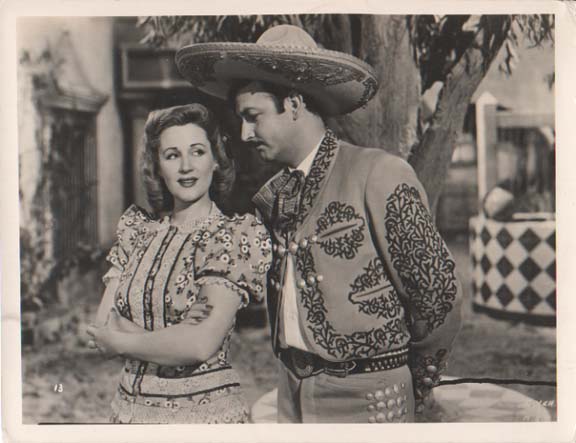 Original B&W still from an unidentified Mexican ranchera film starring Jorge Negrete -- pictured here with a female co-star. Light signs of use -- but no major flaws... This movie was probably produced in the 1940s. $20 |
