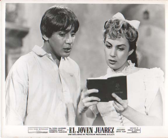 Original B&W still from a 1953 Mexican biography film. The photo has mild signs of use -- a very light crease near the lower left corner and a few tiny surface marks -- but these minor flaws are not very distracting... This movie starred Maria Elena Marques, Humberto Almazan, Domingo Soler, Rodolfo Landa and Carlos Riquelme. $15 |