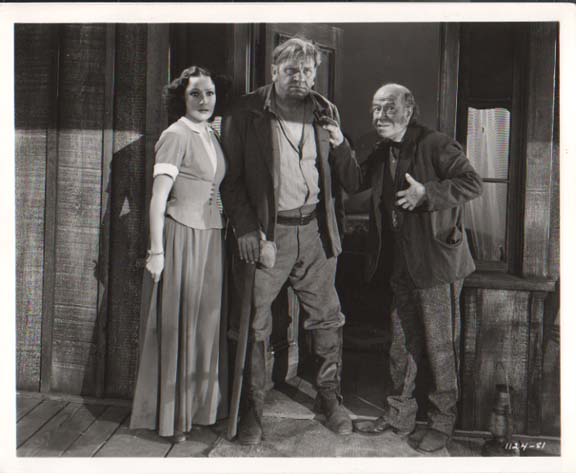 Original B&W still from a 1940 American western film. The photo has a few light surface bends -- but these are mainly noticeable when light hits the surface just right . Otherwise, the photo is clean and bright... This movie starred Dolores del Rio, Wallace Beery, John Howard and Donald Meek. There is part of a title snipe over the original title on the bottom border. $15 |