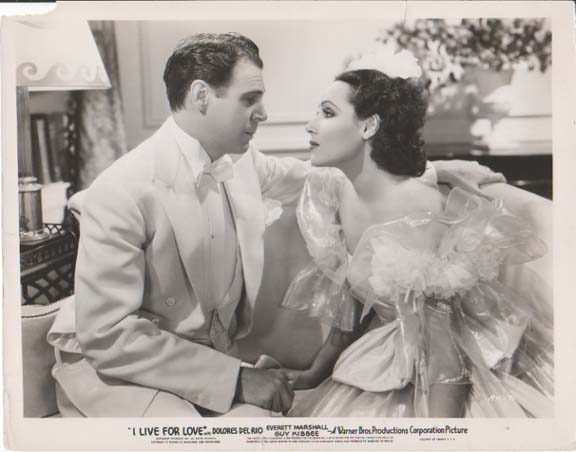 Original B&W still from a 1935 American comedy film. Nice image of Dolores del Rio with a male co-star. There is a small chip at the upper left corner, but this does not affect the image area... This movie starred Everett Marshall, Dolores del Rio, Guy Kibbee, Allen Jenkins and Berton Churchill. $15 |