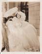 Original studio portrait of Dolores del Rio was probably taken in 1929 or early 1930. This photo was apparently used as an illustration for a newspaper, or magazine, as there are some publisher's notations, on the reverse side of the photo. This photo was also used to illustrate the book, MORE FABULOUS FACES -- and a Doubleday & Co. snipe is on the back -- in addition to an original studio info snipe. The still has some condition problems -- large chips along the left edge and two large tears near the bottom. However, the main image is not greatly affected, and if matted and framed, this rare photo would look great. $10 |