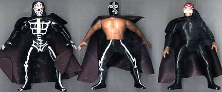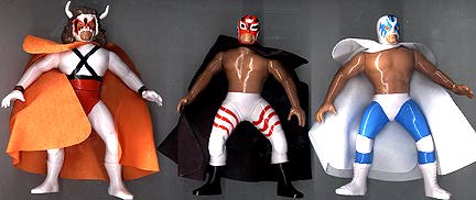 Great 5.5" posable action figures are well-made -- each accurately portraying a real-life Mexican wrestling star. This series were never produced with display cards, so all figures are sold loose. These toys were made in Mexico, but they are of far better quality, than the typical Mexican action figure. Interestingly enough, some were made with the Luchador in his wrestling outfit, while there are some variations with the wrestler wearing his mask, but otherwise dressed in street clothes. There are approximately 100 figures in this series (including a few midget wrestlers).